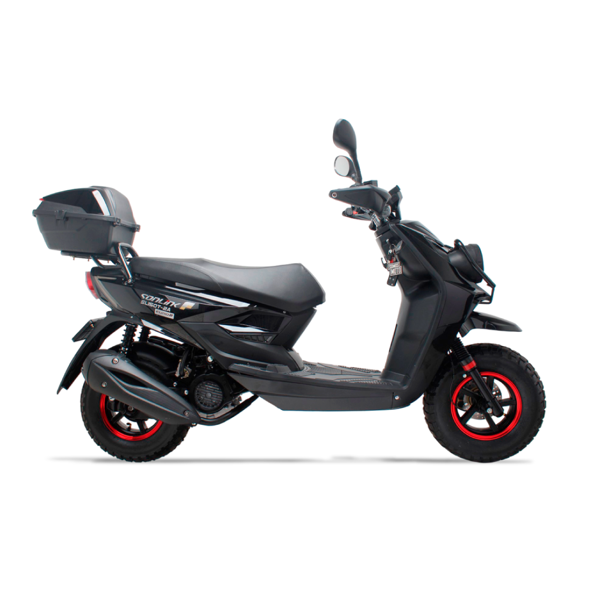 La SONLINK SL150T-2A es la scooter automática ideal para moverte con comodidad y estilo por la ciudad. Con su motor de 150cc y 6.2 HP, te ofrece un manejo suave y potente. Su transmisión automática, frenos de disco y tambor, y un consumo de 130 km por galón te garantizan un viaje seguro, cómodo y eficiente en cada uno de tus recorridos.